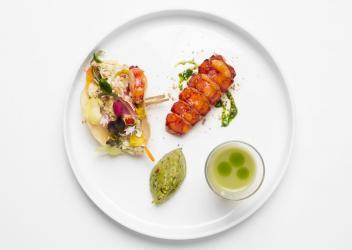 For a comfortable meal in an impressive space in Mayfair, this wood-panneled chamber has much to recommend it, and is one of the better-preserved traditional dining rooms (dating originally from the 1850s and made over in the 1930s). Chef Sofian Msterfi injects North African ideas from his Moroccan roots into some of the dishes on his five-course (for £95 per person) or seven-course (for £140 per person) menus. The odd reporter feels this is “too much concept” for their tastes, but for the most part it’s an approach that’s very well received.