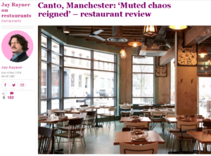 For The Observer, Jay Rayner was in Manchester, visiting the sibling to El Gato Negro. Unfortunately, Canto was not the same slick, delicious experience. Portuguese rather than Spanish, with “random outbreaks of fusion” in the small-plates menu.