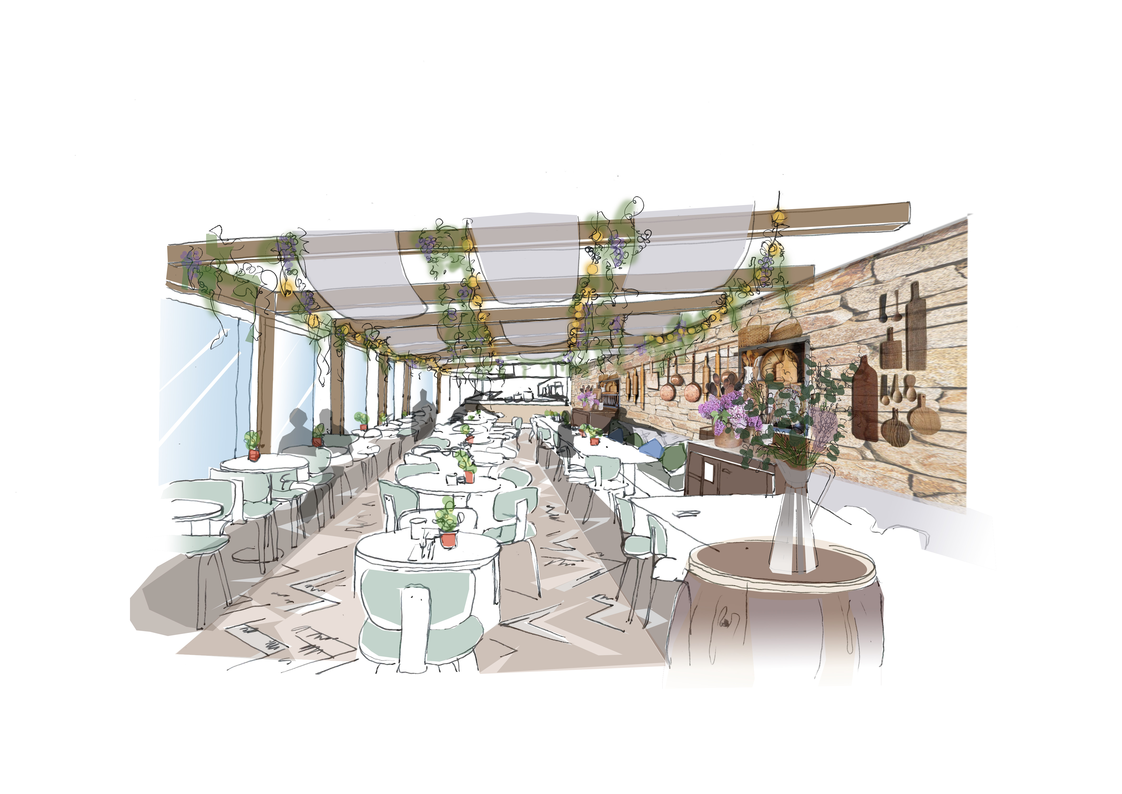 Inspired by traditional Italian trattorias, Il Tetto has transformed Selfridges’s rooftop into a casual neighbourhood spot with accents of Tuscan red, burnt orange and olive green throughout and terracotta pots filled with herbs. Des McDonald has worked closely with head chef Luca Terraneo (formerly of L’Anima) to create the menu.