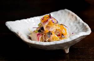 The izakaya-style eatery is a collaboration between Jason Atherton and exec head chef Alex Craciun, who has worked within The Social Company for four years, previously sous chef at Pollen Street Social. In preparation for the launch, Craciun relocated to Japan on a research trip, spending the year studying at the Kyoto Culinary School. He also worked at restaurant Kikunoi under Chef Yoshihiro Murata in Kyoto then RyuGin under Seiji Yamamoto in Tokyo.