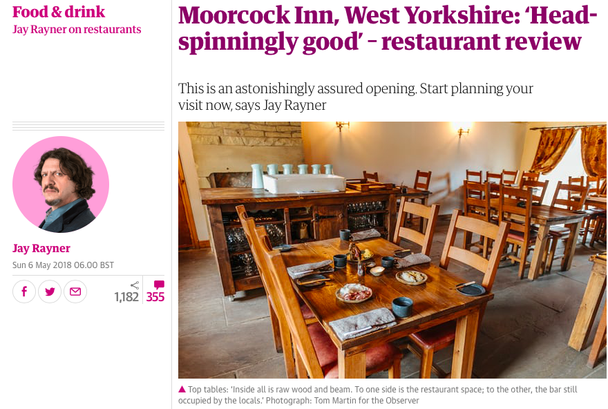 Jay Rayner in The Observer lets us all in on what he thinks will be ‘the next big thing’ – the Moorcock Inn, Yorkshire