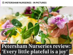 “Petersham Nurseries in Richmond started by chance… fresh, seasonal, pretty dishes, much decorated with flowers, leaves and herbs… enormous expansion into the heart of Covent Garden — 286 covers in total.