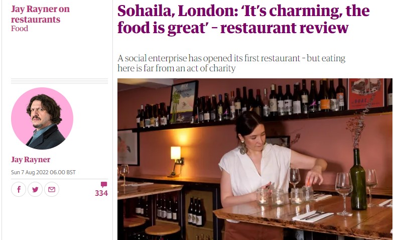 “Somewhere like Sohaila deserves to flourish. It’s charming, the food is great and at its heart is a noble purpose.”
