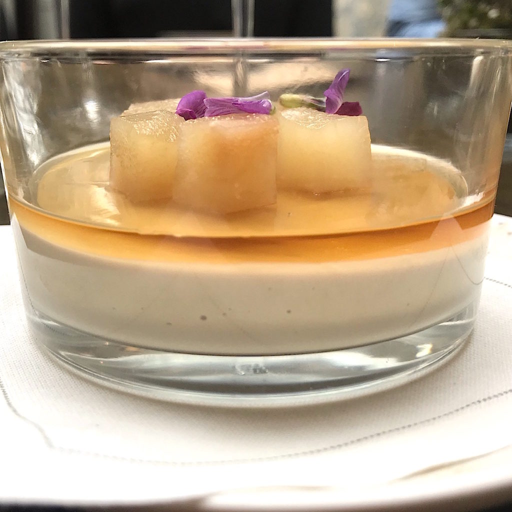 — Elderflower custard slice with buttermilk sorbet and English strawberries