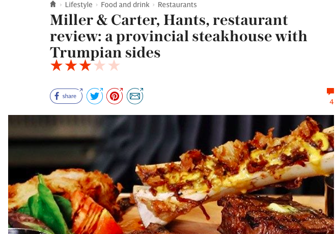 Keith Miller in The Telegraph reviews ‘provincial steakhouse’ Miller & Carter, Bursledon