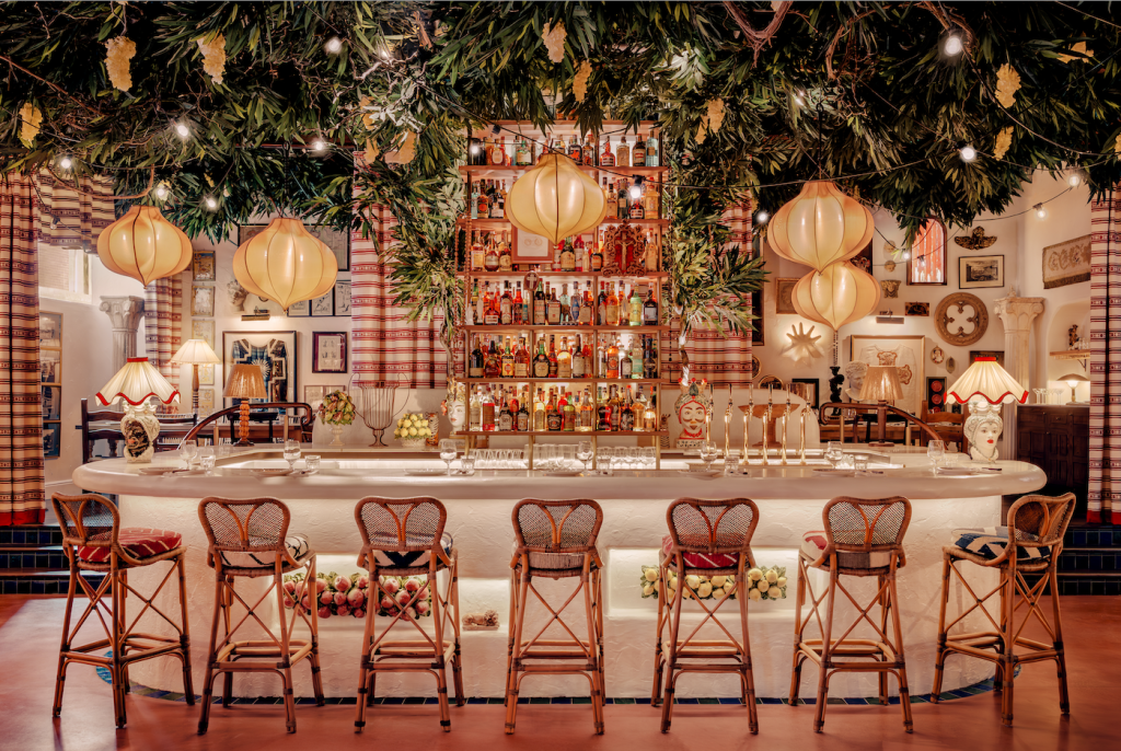 Circolo Popolare Manchester can cater for 280 guests over two storeys that have been kitted out by Big Mamma’s in-house interior design team Studio Kiki, with numerous trinkets from flea markets across Italy as well as silk pendant lights, more than 5,000 vintage bottles, and a canopy of eucalyptus trees.