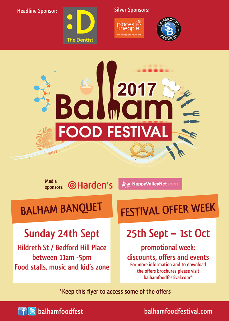 The event is sponsored by The Dentist, Places for People, Sambrook’s Brewery, with media partners Harden’s and NappyValleyNet.com. The Balham Food Festival is supported by Balham Partnership, Wandsworth Council and delivered by Think Events London Ltd. For all the latest news check out Twitter and Facebook @Balhamfoodfest