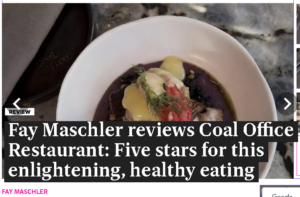 In The Evening Standard, Fay Maschler awarded a rare five stars to her two meals at Coal Office, the new “new Israeli” in Coal Drops Yard, London’s latest foodie mecca near King’s Cross.