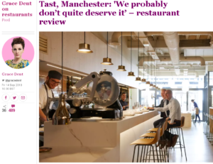 Grace Dent in The Guardian visited Hot Manchester Newcomer Tast Cuina Catalana, one of the ” delicate, thoughtful, educational places” that is aiming to bring a true taste of Spain to Britain. It’s “forward-reaching”, “high-end, imaginative, occasionally edgy” – and huge: there’s three “capacious” floors to fill, each offering a different level of formality and adventurousness. Will it work?