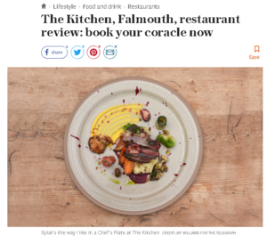 Keith Miller in The Telegraph visited The Kitchen in an area of Falmouth “that’s visibly blistering in the white heat of culture-led regeneration”. His lunch, from a “maddeningly vague”, “veg-led” menu, “trod a tightrope between messy youthful exuberance and grown-up bourgeois- bohemianism”.