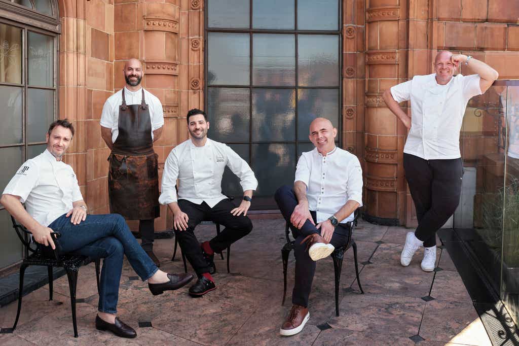 They are, pictured left to right, Jason Atherton; Dave Pynt, the Aussie chef behind Burnt Ends barbecue restaurant in Singapore, who is soon to launch an offshoot in Harrods; Phil Khoury, Harrods’ own head of pastry; Angelo Musa, pâtissier extraordinaire at the Hôtel Plaza Athénée in Paris; and Tom Kerridge.