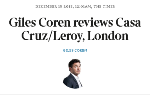 Even Giles Coren (reviewing for Saturday’s Times magazine) was a little startled at the bill for 6 people at Casa Cruz, a three-year-old restaurant in Notting Hill (“where all the rich foreign weirdos who live round there go for dinner most nights”). It came to (just) over £1000 – “I think the other diners were as surprised and horrified as we were”.