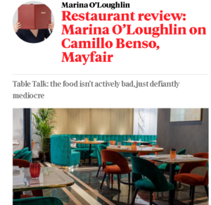 “Camillo Benso is a truly special place. It has the remarkable effect of making me feel retroactively better disposed towards Jamie’s Italian.”