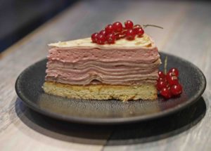Hand-crafted by head chef William Guillemot, the multi-tiered mille feuille-style wedding cake features layer upon layer of crêpes with raspberry flavoured cream, piled high on top of a vanilla and rose sponge base. Decorated with fresh berries and roses, all diners will receive a slice for dessert free of charge – perfectly washed down with a celebratory glass of bubbly!