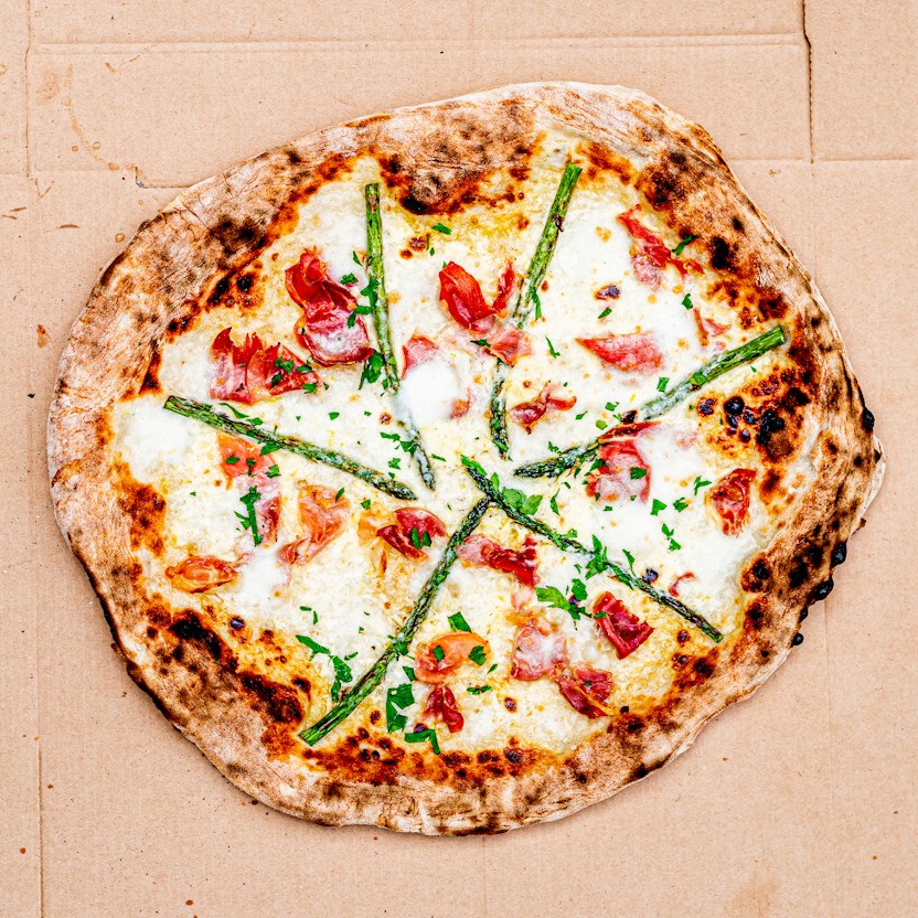 The menu focuses on Italian street food including arancini, calamari, and sourdough pizzas. The menu will change but features the likes of aubergine and kale with sundried tomato pesto, Parma ham and asparagus, and mushroom and balsamic.