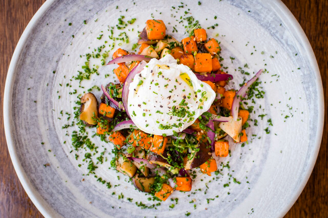 At the helm in the kitchen is executive chef Liam Smith-Laing, formerly of La Petite Maison. His Mediterranean-focused menu makes use of the kitchen’s open robata grill and a Josper oven for much of the cooking.