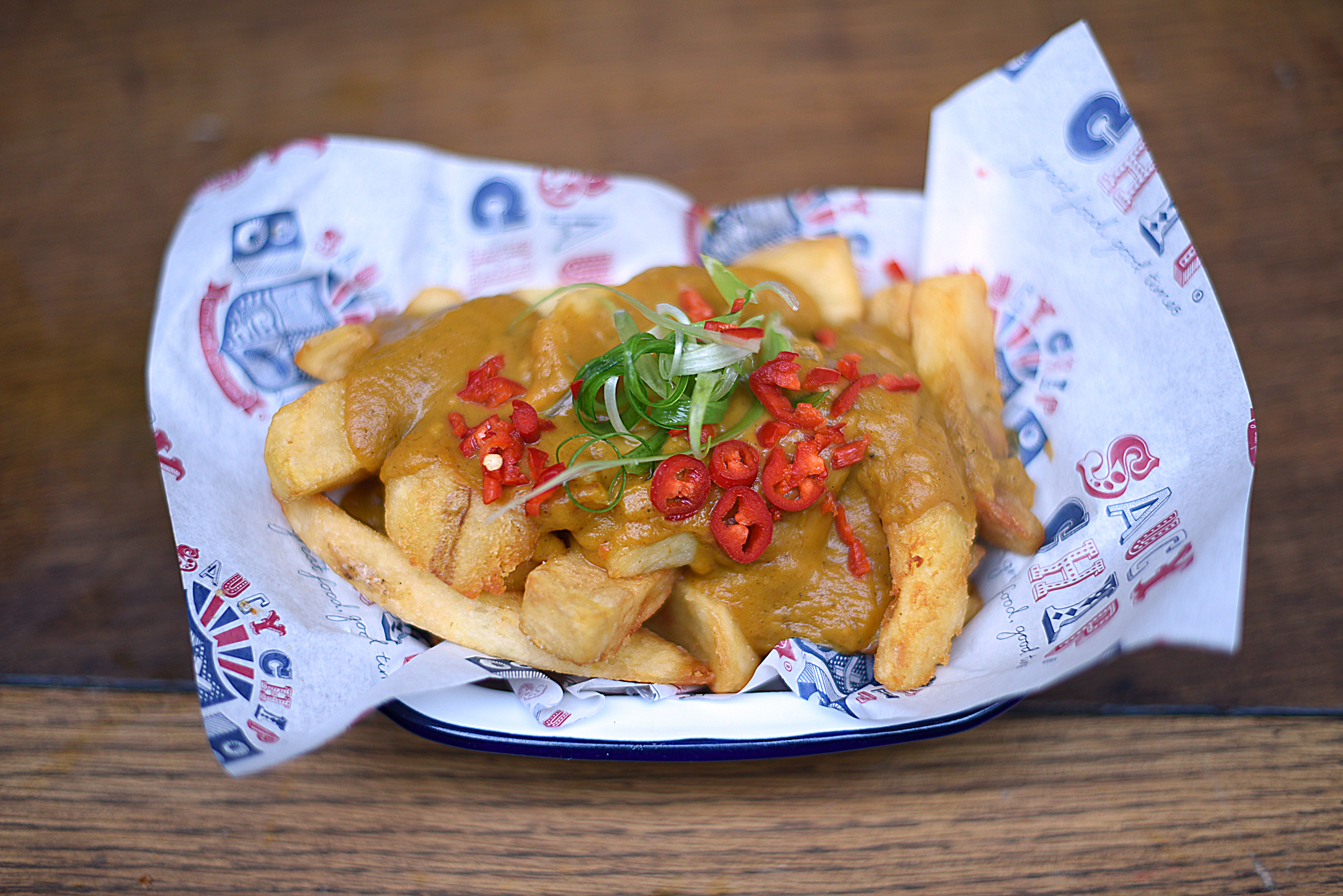 Founded by former O2 arena marketing manager Jules Heaton, Saucy Chip relies on spuds grown by a fourth-generation Cheshire potato farmer. The chips are cut by hand and fried three times, to be served covered with homemade katsu curry sauce inspired by the Northern chip-shop classic.