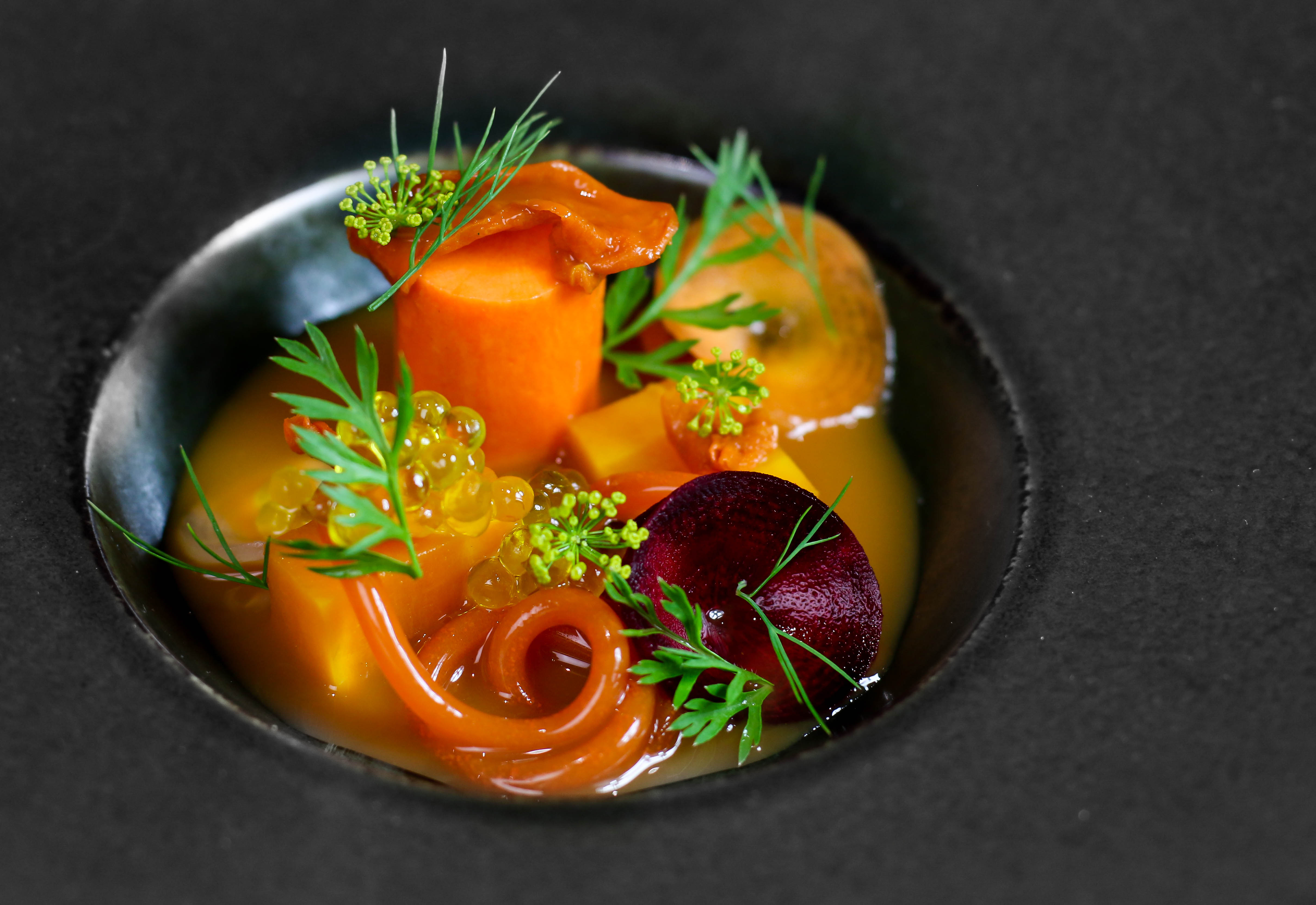 The summer tasting menus include dishes like: Crispy tempura native Rock Oyster served with spiced tartare of hamachi and a dashi and plankton gel; salt baked, pickled and spaghetti of heirloom carrot with a cold pressing of carrot, dill seed and green carrot top; cured trout with a quinine sorbet served with crispy ginger and compressed cucamelons evokes the botanicals of gin with the essence of tonic; Playfully named ‘KFV’ – Paris House’s Kentucky Fried Veal Sweetbreads are smoky and rich with sun dried tomato, smoked onion and chipotle chillies.