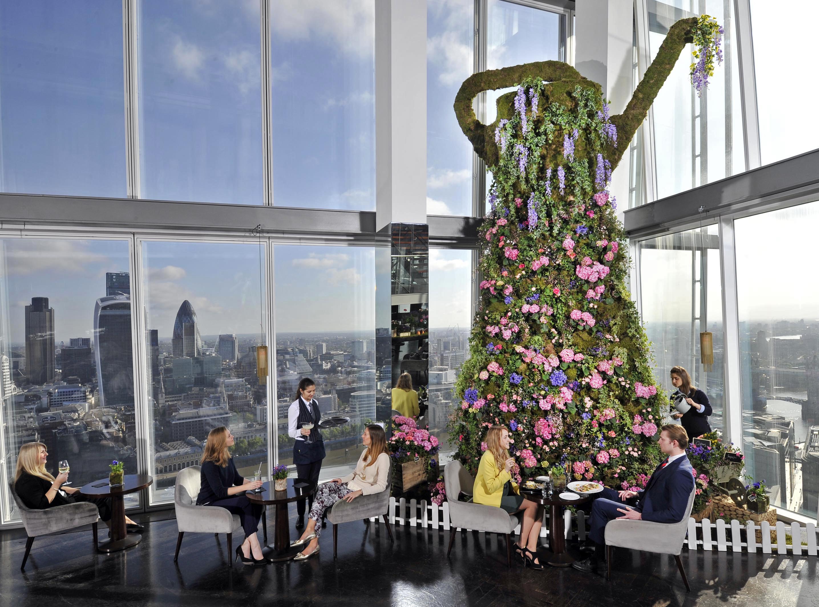 Take a trip to the top of the Shard and visit this 31st floor restaurant’s atrium installation, which has been designed by florist-to-the-celebs McQueens. To accompany the display there is a floral-themed menu featuring jasmine tea-steamed artichoke with teal & citrus jelly and Jerusalem artichoke mousse with viola flowers, followed by roasted wild sea bass with white bean stew, aloe vera cubes, dandelion seasoned with acacia rose vinaigrette. For dessert, an orange blossom and pink pepper panna cotta will be served with black olive crumble and a white chocolate sorbet.