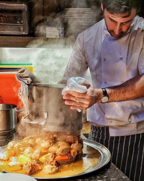 His dishes include handmade kubba hamuth dumplings in tomato sauce;Â dolma of vine leaves, onions and baby peppers stuffed with minced lamb, spices and rice, and slow-cooked in lemon and pomegranate (pictured); and knaffa, a dessert of baked cream, cheese, filo pastry and orange blossom water syrup.