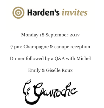 The inaugural, sell-out Harden’s invites dinner was hosted by Peter Harden and Michel, Emily and Giselle Roux at Mayfair’s temple of Gallic gastronomy, Le Gavroche, on Monday 18 September. The event celebrated the launch of Emily and Giselle’s cook book New French Table and was a truly family affair as even Monsieur Albert Roux himself put in an appearance.
