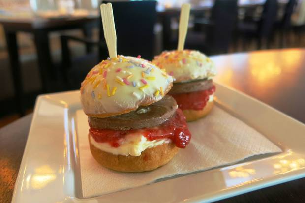 How about this for an egg-centric Easter creation? The burger lab at Studio Kitchen has come up with a sweet crème egg burger. The mini slider burgers are made from a sweet brioche bun dipped in white chocolate and sprinkled with hundreds and thousands. The ‘burger’ is a melted crème egg, mascarpone cream, and strawberry jelly.