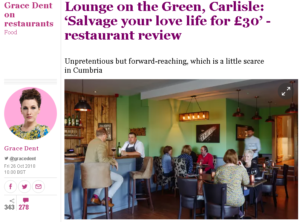 Grace Dent in The Guardian continued a tour of Border country with a visit to Carlisle, and a “fiercely English” restaurant in a former furniture shop, in a quiet village “a full eight miles from the “Welcome to Scotland” sign“.