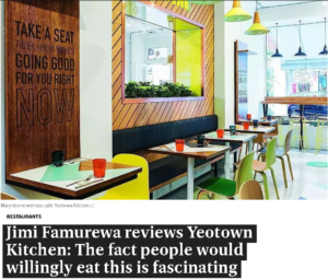 It’s “densely peopled with scurrying chefs” dishing up the menu of “simple Cantonese roasts”; “hyper-Instagrammable dishes” that were “a succession of bright colours and contrasting textures”, including “mushroom dumplings… marbled to resemble actual mushrooms in a faintly Blumenthalian coup de theatre”.