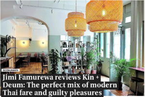 Jimi Famurewa in The Evening Standard enjoyed the “subtly modernised homeliness” of Kin + Deum, run by the children of the owner of Suchard, previously on the same site. Their Thai food bridges the gap between old-school pub pad Thai and the new breed of Thai cooking that has sprung up in London recently, all “robust regionality” and big flavours.