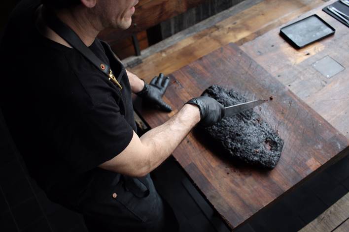 Smoked for 12-15 hours over kiln-dried English oak, and accompanied by pickled cucumbers, chillis and mustard barbecue, the whole brisket serves between 10-20 people and is also be available to takeaway.