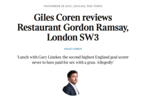 Giles Coren in the Times revisits Restaurant Gordon Ramsay (the original on Royal Hospital Road) and finds the three Michelin star level service to be just a bit much… “Smartly redone a couple of years ago in the art deco style, it must look great when empty, but it was so rammed with waiters that I […]